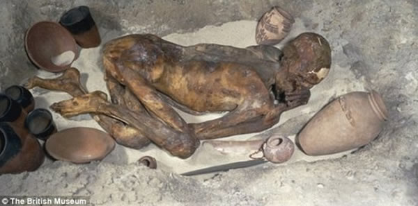 在大英博物馆内陈列着一具著名的木乃伊,这位埃及人名叫琴吉(Ginger),距今大约5500年。令人惊讶的是,科学家通过借助医学扫描的3D验尸发现他死于背后的刺伤。根据最新的研究发现,大英博物馆中已经陈列展示一百多年的一具木乃伊,是个被凶手从背后刺杀身亡的年轻人。通过对古埃及木乃伊琴吉的扫描发现,在他的左侧肩胛骨下方有个穿刺伤,而这很可能就是他被谋杀的证据。借助虚拟触摸技术,大英博物馆的参观者可以看到扫描的结果,也可以通过触摸屏详细查看琴吉的身体内部情况,从中寻找他被凶杀的细节。