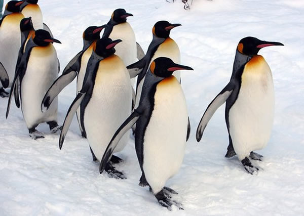 帝企鹅身高4英尺是所有企鹅物种中最高的。生活在南极洲的这些大鸟通过潜水捕食鱼类、磷虾和甲壳纲动物,而且它能深入1755英尺的水下长达18分钟。2011年6月一只帝企鹅被发现在新西兰海岸吞食沙子,康复之后这只被称为“快乐的大脚”的企鹅携带着一个追踪装置被释放到了南极洋中。