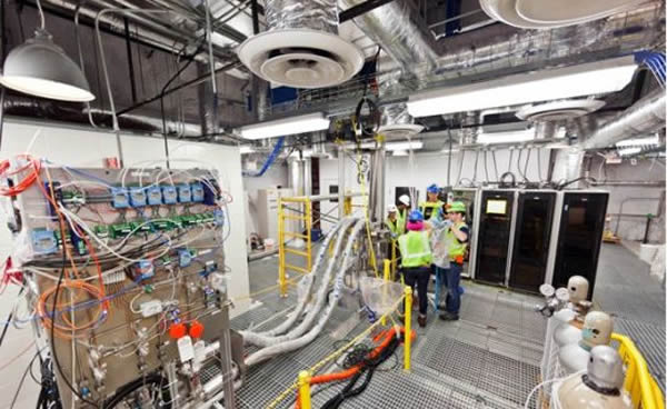 这个地下储水池尺寸巨大,高20英尺(约合6.1米),直径25英尺(约合7.6米)。将精密的探测器缓缓的降至水池底部的过程花费了整整两个月的时间。科学家们目前正在努力完成最后的管路铺设工作,以便让探测器中的氙保持尽可能高的纯度。在探测器内部充满了液态的和气态的氙,这些氙会被不断地进行循环,并通过一台净化器进行净化,非常像病人进行血液透析治疗的过程。科学家们这样做是为了尽最大可能消除氙中的杂质以便提升探测精度。