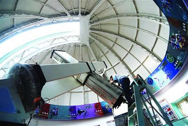 “目前天文台的这架性能优秀的望远镜只能在晚上看看月亮和比较明亮的大行星,虽然自身具备天体摄影的功能,但是因为背景光太亮,所以已经无法满足底片对光线的苛刻要求,望远镜第二个重要的功能也就失去了。 ”青岛观象台孙台长介绍,目前这架望远镜的主要功能就是观测太阳,晚上几乎已经失去功能了。