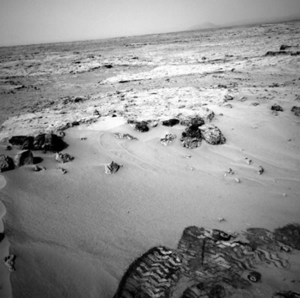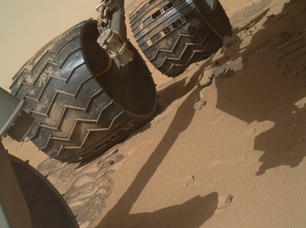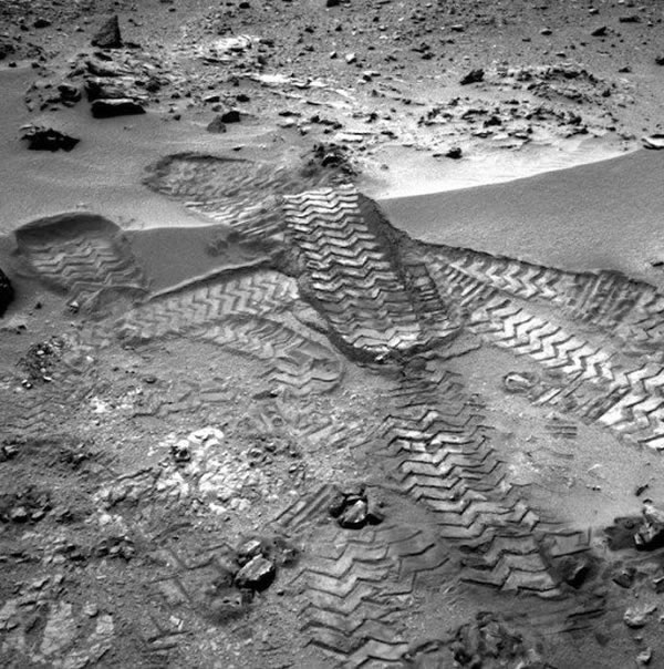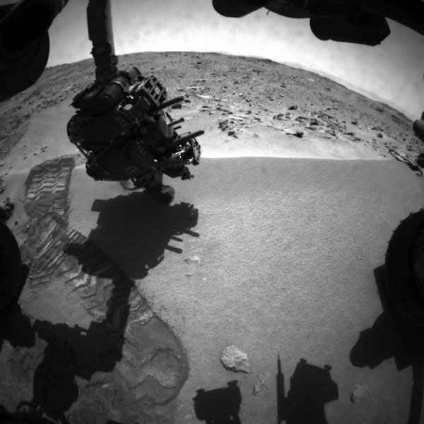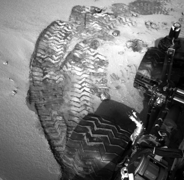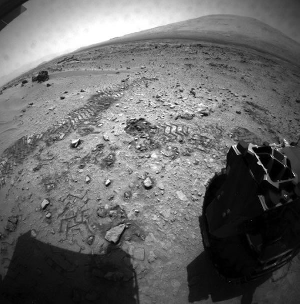 自NASA好奇号火星车于今年8月6日降落火星以来,迄今已行走近数百英尺,期间经历了各种不同的地形并留下车轮痕迹,但它们并不会被永久保留下来,因为火星上存在发生频繁的尘暴。目前,好奇号正往地球发送最新拍摄到的图像。