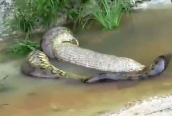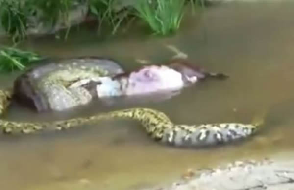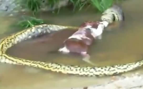 视频中的绿色巨蟒一般长约6米,有些块头大的能长到12米。鱼、鸟甚至熊都在它们的食谱之内。不过也有评论者认为,这条巨蟒吐出的动物不是奶牛,而是水豚,而成年水豚一般重达66公斤。