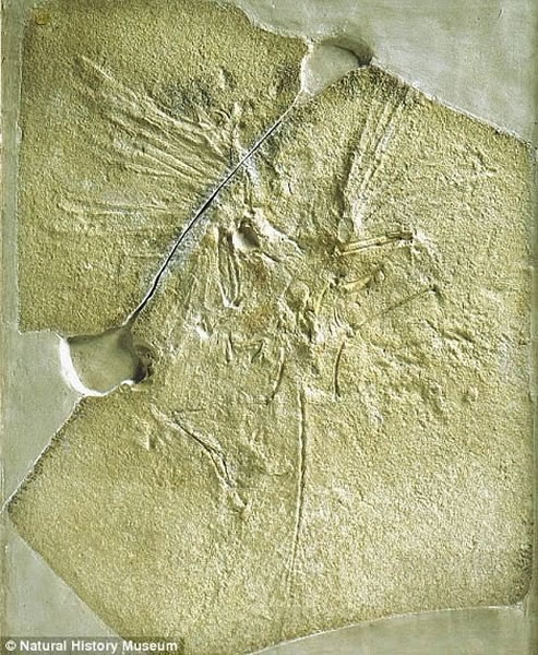包含着始祖鸟的石板,这是地球上最早期的鸟类,兼具鸟类和恐龙的特征