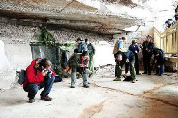 进入莲花保寨恐龙足迹集中区,专家们纷纷拿出相机、比例尺等进行反复拍摄、比划,有的甚至直接趴跪到地上专心观察研究起来。