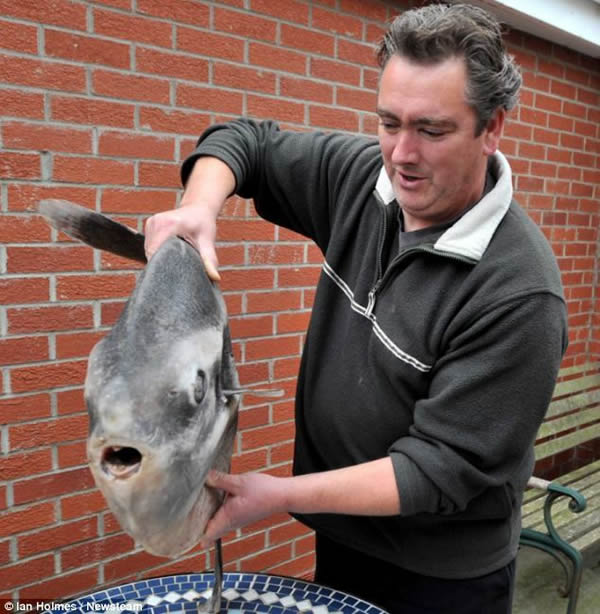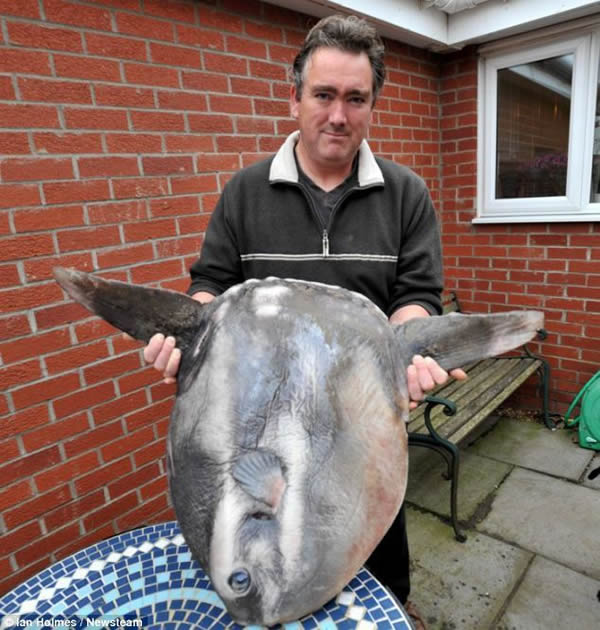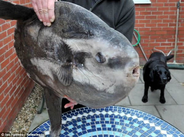 一名居住在英国东海岸的男子在遛狗时发现一条重约38公斤的翻车鱼。这条翻车鱼虽然重约38公斤,但是它仍然是条小鱼。一条成年翻车鱼可以长到4.2米长,3.1米宽,重量可以达到2267公斤。翻车鱼一般生活在英国西海岸几千公里外的大西洋中,在英国东海岸发现它极其罕见。