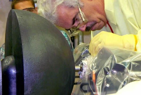 洛斯阿拉莫斯国家实验室的工程师John Bounds正在测试核能反应引擎的原型