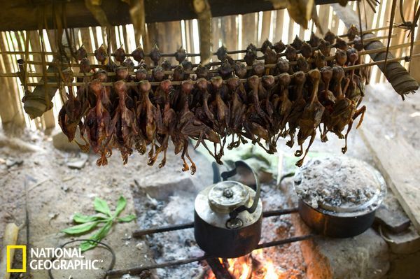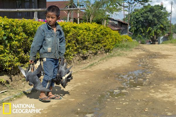 本图拍摄于2012年10月。这些被捉住的阿穆尔隼,部分被猎人自己享用,部分被烟熏处理后以备以后再出售。当地政府推测,黑市中有大量的阿穆尔隼肉出售。阿穆尔隼每年秋季都会向南非迁徙,并在那里过冬。然而,每当它们途经那加兰邦时,就成为了该地区捕猎盛会的牺牲品。迁徙的阿穆尔隼群数量庞大,每个集群都多达数万只。今年10月份,“保护印度”组织偶然发现了这种大屠杀行为,并发起一场旨在阻止这种恶性捕猎行为的运动。该组织认为,这种特殊的迁徙也许是世界上最大规模的阿穆尔隼集会。印度官方发誓要终止这种大屠杀行为,并为阿穆尔隼2013年的迁徙制定了保护计划。