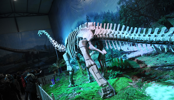 外国专家在綦江博物馆綦龙厅参观綦龙化石标本
