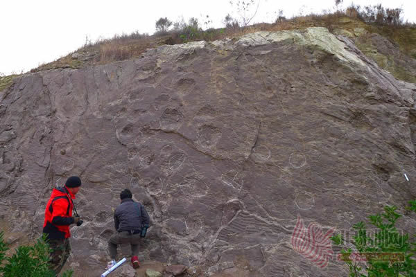 “这次发现的驰龙足迹化石比较隐蔽,在高坡上,站在梯子上才能看见。”王正河介绍,这批恐龙足迹形成于早白垩世晚期,距今约一亿年,化石具有空间分布广、层位多、种类丰富、古地理环境较为一致的特征。