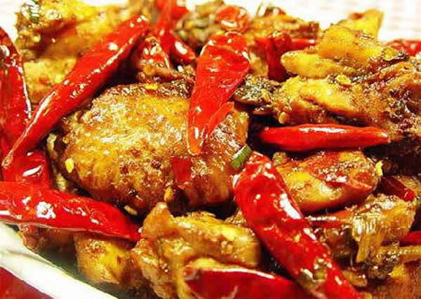 彝族的辣仔鸡,用2斤左右的仔鸡,杀后烤好,将肉宰碎(搅粉碎)后加上,木姜、生姜、辣椒面、花椒等佐料,和冷开水就可以吃了.原汁原味,味道辣而爽口,肉细嫩鲜美,品后余味无穷。要用高山特产的红海椒,深受彝族的喜爱。