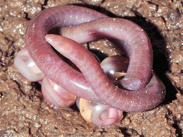 这种动物并不是蠕虫,也不是蛇类。2月份发表的一项研究报告表明,这是一种钻地穴居的无足两栖动物,是一种科学上全新的物种。本图中所拍摄的这种动物生活于印度北部,当时它正在保卫着自己的一窝蛋。科学家认为,这一动物应该是最新发现6种蚓螈新物种之一。