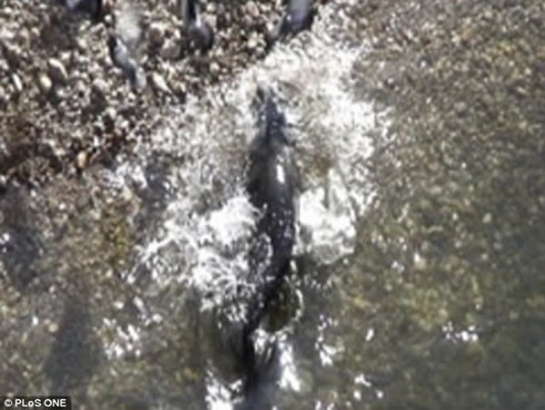 从视频图像中可清晰地看到这些鲶鱼能够潜伏在岸边突然攻击鸽子,之后紧紧咬住鸽子将它们拉入水中吞食。这种不同寻常的特征此前从未观测到。