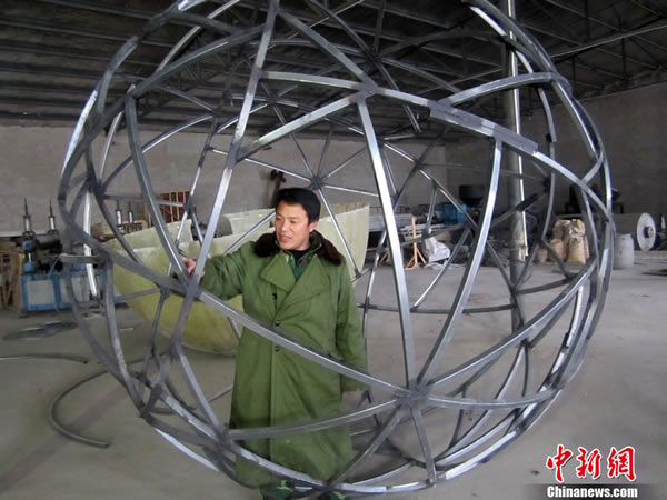 12月7日,在河北省香河县钳屯乡的一个工厂内,刘启元展示其自主研制的“诺亚方舟”。