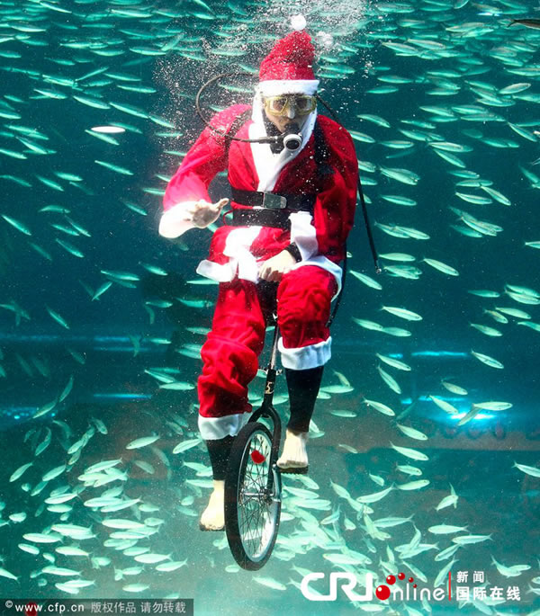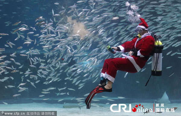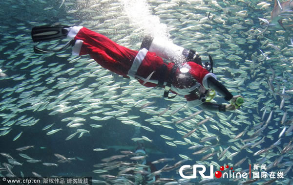 韩国潜水员打扮成圣诞老人在水族箱中同鱼儿共舞 来源: 蜘蛛网 时间:2012年12月09日 10:03 韩国潜水员打扮成圣诞老人在水族箱中同鱼儿共舞 韩国潜水员打扮成圣诞老人在水族箱中同鱼儿共舞 韩国潜水员打扮成圣诞老人在水族箱中同鱼儿共舞 当地时间2012年12月8日,韩国首尔,韩国潜水员身着圣诞老人的服装,在水族箱中同鱼儿共舞。 上一篇 下一篇 TAG: 韩国 圣诞老人