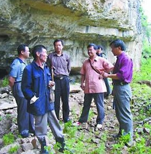 高星(右一)等2004年在山东考察,向老乡询问古人类化石线索。