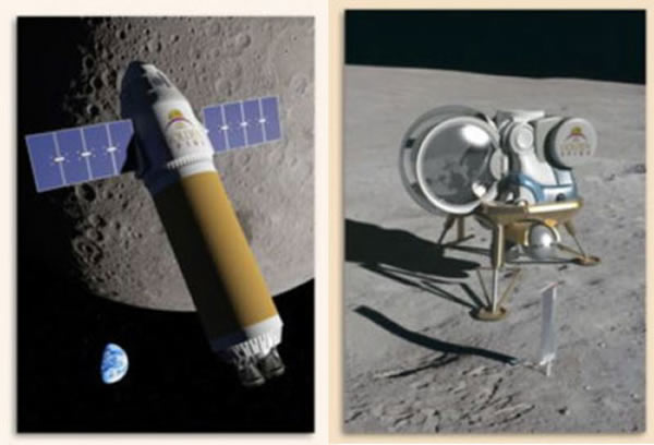 (左)轨道舱;(右)登陆艇。该公司现正开发登月飞行器以及太空服。
