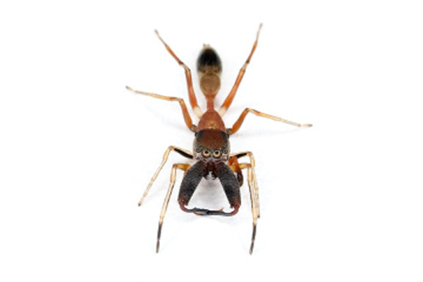 这个名字有三重意义:这是种蜘蛛,它有对巨牙,它还会跳。该新种蜘蛛于今年在婆罗洲京那巴鲁公园被发现。巨大的牙齿可能用来打斗,不过其发现者认为,巨牙可能与求爱仪式有关。京那巴鲁公园是新种蜘蛛的聚集地,2012年园内发现了10到15种新奇的跳蛛。