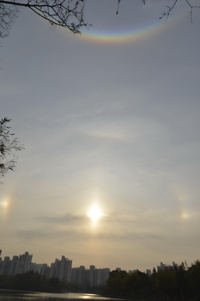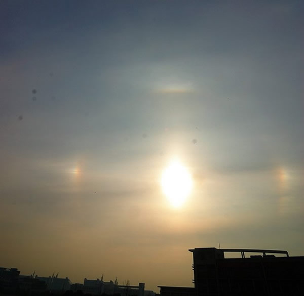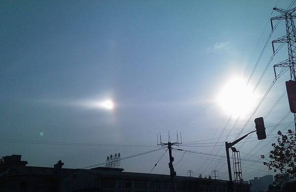 12月10日上午,上海、江苏局部天空出现罕见的“3个太阳”奇观,引起不少市民和网友的兴趣。对此,上海中心气象台解释称,这是气象上的日晕和幻日现象。另有专家表示,这只是气象上正常的大气光学现象,与“世界末日”无关。
