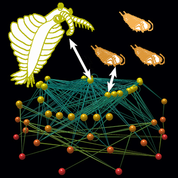 来自美国新墨西哥州圣菲的圣菲研究所和加州伯克利太平洋生态信息学和计算生态学实验室的生态学家Jennifer Dunne领导着一个多学科的科学家团队,研究了保存在寒武纪岩石中的海洋生物的食物网。在寒武纪时代出现了一场多细胞生物——包括今天的物种的祖先,以及许多走入进化的死胡同的奇怪生物——多样性的大爆发。论文的共同作者、英国微软剑桥研究院的Richard Williams开发了一种最新型的“Network3D”软件,用于分析食物网并让其可视化。