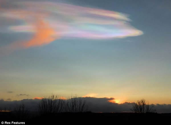 阿伯丁郡气象部门的戴夫•克拉克(Dave Clark)指出,这种现象因为形成于高高的对流层,所以很罕见。该现象与人类向大气中排放过多的甲烷有直接关系,甲烷与对流层中的抽样发生化学反应,就形成了这种五彩云。