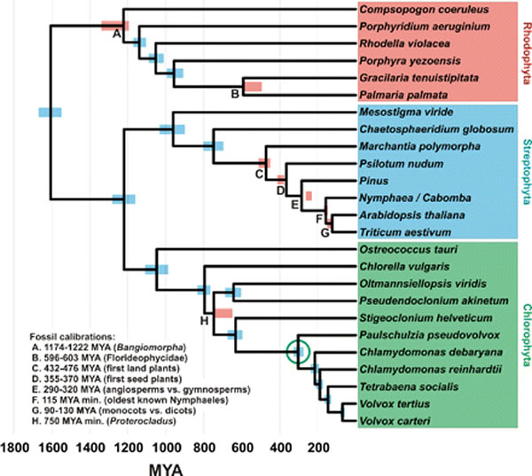 Matthew Herron及其同事对团藻的演化进行了广泛的研究,利用几种化石校正点和一组叶绿体基因测绘了团藻物种如何分化。根据一项系统发育的计算机分析,这组科学家发现团藻很可能是在2.34亿年前从其他藻类分化出来。到了约2亿年前,这种藻进化出了我们今天看到的大多数主要的适应性。