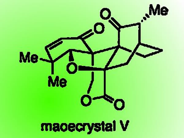 Samuel J. Danishefsky 和 Feng Peng解释说,maoecrystal V在中国云南省生长的一种植物中天然地存在。中医从业人员使用这种称为毛萼香茶菜(Isodon eriocalyx Hara)的草药已经有数百年时间。科学家于1994年分离出了maoecrystal V,并且发现它具有抗癌作用,值得进行进一步研究。为了进行研究,需要大量的这种物质。然而,这种草药仅含有少量的这种物质。在一次实验中需要26磅以上的干叶子从而生产出0.00017637盎司maoecrystal V。在2010年,首次有一组科学家在实验室里制造出了maoecrystal V。如今,第二组科学家发现了制造这种有潜力的抗癌化合物的一条新路径。