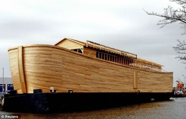 诺亚方舟的复制品,6年前由荷兰基督徒约翰-惠博斯在斯哈亨制造