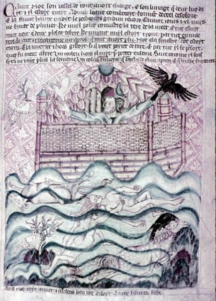 14世纪的一份英国手稿,展示了大洪水即将结束时的诺亚方舟