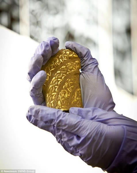 斯塔福德郡2009年曾发掘出盎格鲁-撒克逊时代宝藏的地区,近日又有约90件新的金器和银器出土,其中包括一个头盔的一部分,以及一件鹰形的物体。