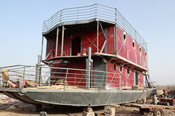 这张拍摄于2012年11月24日的照片显示了陆政海未完工的船只。陆政海是新疆乌鲁木齐人,他害怕2012年末日来临,洪水会淹没他家。陆政海说他决定将所有的积蓄,约103万人民币,用在建造这艘他理想中坚不可摧的方舟。