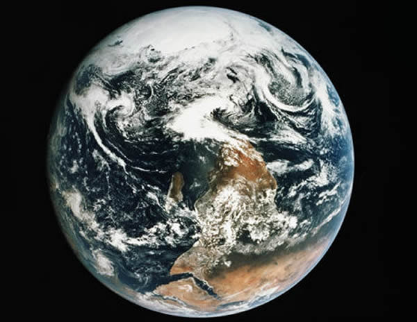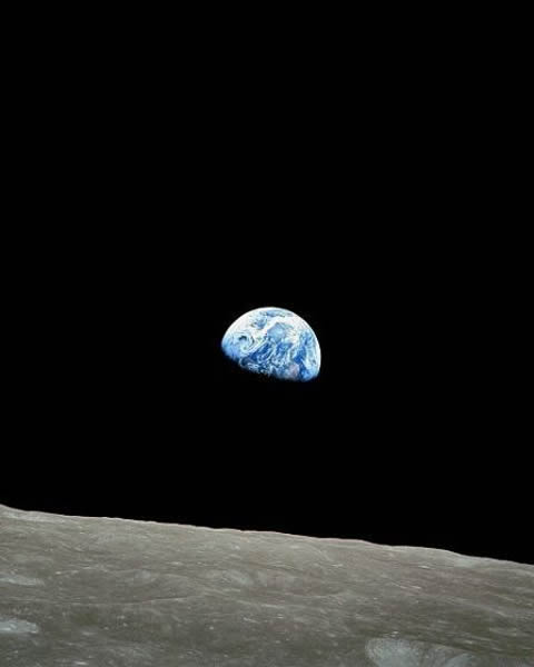 摄于1968年平安夜的《地出》中,生机勃勃的地球与荒凉灰朦的月球并列在月地平线上,而这更让人重视地球的极度脆弱。美国诗人阿奇博尔德·麦克利什说:“我们现在已知,我们是血脉相连真兄弟……地球上的人们应团结。”