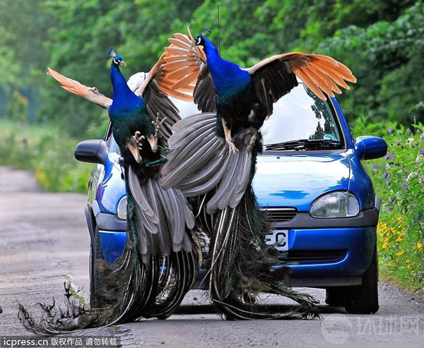 两只孔雀为保护自己领地打架 来源: 蜘蛛网 时间:2012年12月23日 14:13 两只孔雀为保护自己领地打架 英国Lancashire,两只孔雀,昂着头,翘着漂亮的尾巴,高傲走在路上,但为了保护自己的领地,不顾漂亮的羽毛打了起来,这让周围的居民紧张起来,猫咪和狗狗找地方掩护,车子也暂停在路边,居民甚至准备了水枪以保卫自己的花园。 上一篇 下一篇 TAG: 孔雀