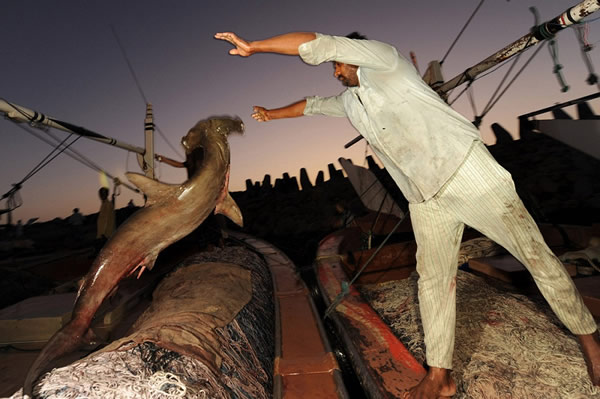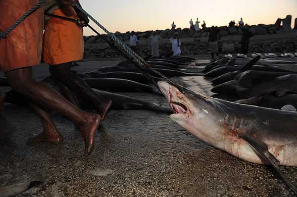 10多年来,德国摄影师托马斯・帕斯查克(Thomas P. Peschak)一直用手中的镜头记录世界各地的鲨鱼和血腥的鲨鱼贸易,其中就包括阿拉伯半岛。现在,阿拉伯半岛已成为全球最大的鲨鱼鳍供应地之一。由于消费者对鱼翅羹的旺盛需求――尤其是远东地区――全球鲨鱼鳍贸易十分猖獗。