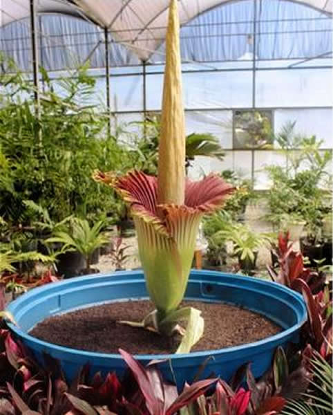 世界最大最臭的植物泰坦魔芋花盛开 来源: 蜘蛛网 时间:2012年12月29日 13:19 巴西贝洛奥里藏特植物园的泰坦魔芋花绽放 据英国《每日电讯报》12月28日报道,世界最大最臭的植物泰坦魔芋花(Titan arum)圣诞节期间在巴西贝洛奥里藏特植物园绽放,这棵高达5.3英尺(约合1.6米)的花吸引了数百游客前往围观。据悉,这株泰坦魔芋上次开花还是在2010年,这次开花花期也仅有72小时。 据悉,泰坦魔芋花原生长于印尼苏门答腊群岛,因散发出一种类似腐烂尸体的臭味,故又称“尸花”。此花极难培植,花龄为150年左右,成花最高预计可以长到3米,是世界上体型最大的花。 国际在线 上一篇 下一篇 TAG: 植物 泰坦魔芋花