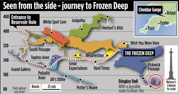 据英国《每日邮报》12月29日报道,英国萨默赛特郡切德峡地下新近发现了英国的最大的洞穴:冰渊。它内部地面面积将近3.2万平方英尺(约3千平方米),整个体积将近141.2万立方英尺(约4万立方米)。洞内景观奇特而壮观。
