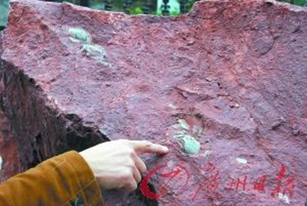 河源恐龙博物馆馆长黄东近日向本报记者独家披露,今年元旦前夕,该馆文物保护工作人员在河源市区桂山的一在建施工工地上,意外发现一座红砂岩层的小山上嵌有上百枚恐龙蛋化石,该馆随即派出工作组连夜进行抢救性挖掘,并制定出应急方案保护化石。