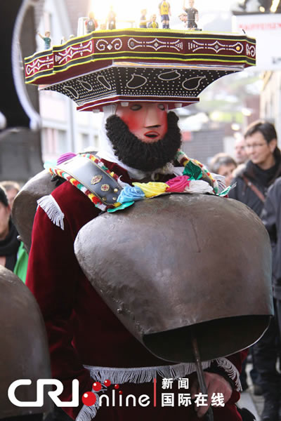 在今年的“驱鬼节”上,有一个“驱鬼小分队”中6个人的头饰上还能看到踢足球、练体操和高山救援的场景。这也是随着时代变迁,除了放牧等传统劳作场景,阿尔卑斯山区的现代生活也成为“驱鬼节”头饰上的风景。