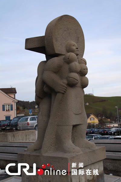 小镇的标志性雕塑,展现的就是“驱鬼节”场景