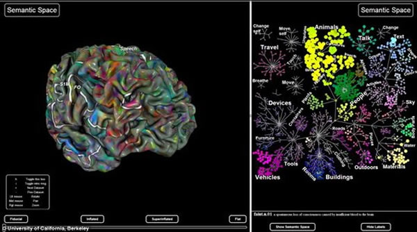 美国加州伯克利分校一支研究小组发现人类大脑能够有序地排列人们日常所看到的物体,并将这些语义概念事物进行分类。当测试者观看视频剪辑数小时,通过大脑成像数据收集的计算机模型可获得测试数据。