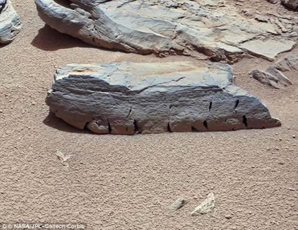 在火星上一片名为“岩巢”的地区发现的岩石,被命名为“岩巢3”,长大约15英寸(约合38厘米),高约4英寸(约合10厘米)。“好奇”号火星车在“岩巢”采集土壤样本并进行分析