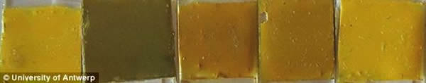 变色前的各种铬黄颜料,暴露在不同类型的光线之下