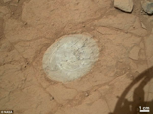 英国每日邮报报道,好奇号火星漫游车在降落火星时喷气火焰烧焦了火星表面,并在岩石上烧出好些洞孔,现在该漫游车终于开始为自己的破坏行为负责,进行各种修补工作,就像皮克斯动画片《机器人总动员》里的清理机器人瓦力一样,开始清扫附近的岩石。