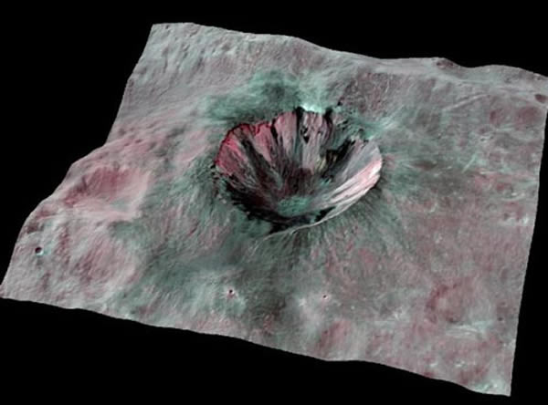 科学家发现灶神星(Vesta)上最大的一些撞击坑内部和边缘部分呈现出暗黑色,有些地方甚至比黑炭还黑。当科学家第一次看到这些的时候,他们为此感到大惑不解。随着后续的研究发现,这种情况是由于撞击形成的,其中黑色的沉积物是富含碳的撞击物体在过去45亿年的漫长历史中逐渐累积形成的。