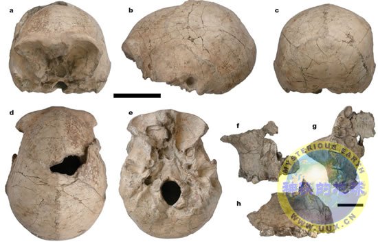 图片所示为新发现的“直立人”化石(被称为KNM-ER 42700的部分颅骨),同时还有来自坦桑尼亚的最大的非洲“直立人”OH 9。