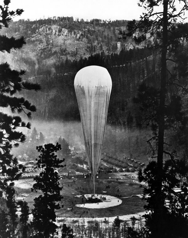 1935年11月11日,美国南达科他州的Stratobowl,由国家地理和美国陆军航空队合作制成的热气球探险者II号正准备升空。气球载着两个飞行员到达约22.5公里高空的平流层中,这是此后21年中的最高纪录。