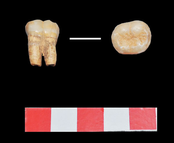 目前据整理出的材料看,发现了六颗人牙化石,除1颗没有完全修理出来外,其余五颗牙齿保存的比较完整,保存的形态学信息比较清楚。初步鉴定有1个门齿、1个前臼齿、1个上臼齿、2个下臼齿等几个类型。整体来看,牙齿磨耗得不是很厉害,有的甚至是幼年个体,牙齿还在牙床中没有长出来。从形态学来看,无论是大小,还是咬合面的形态,初步判断有比较原始的一些特征。