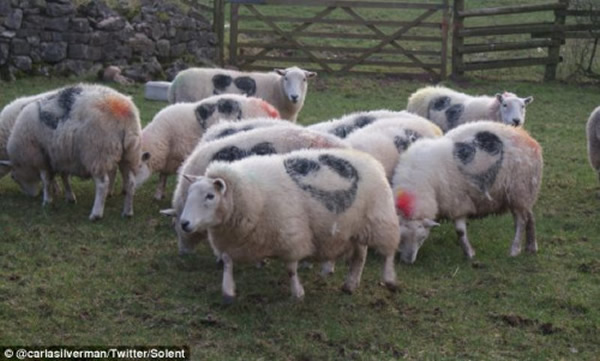日前,英国各地的数百只绵羊身上被发现画上了类似笑脸的“神秘”图案,这一奇观的现象很快成为英国网民热议的话题,有些人甚至猜测是“超自然力量”在背后起作用,不过还是恶作剧的可能性更大。