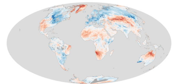 卫星测绘照片展示北半球温度异常现象