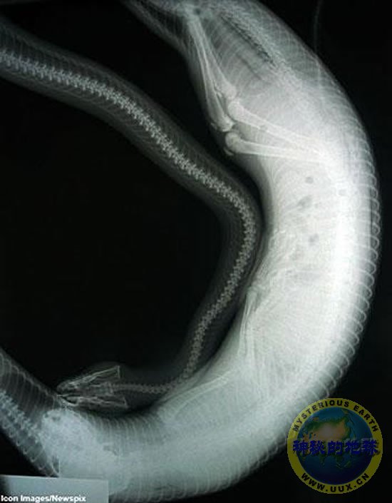 澳大利亚公布巨蟒吞食小猫的X光照片