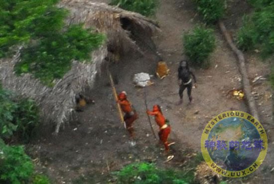 据国外媒体报道,一支探险队从空中拍到了一个与世隔绝的部落----亚马逊河流域的印第安部落,这种与世隔绝的部落全世界已经所剩无几,5月29日,他们公布了这组惊人照片,从照片上可以看到,这些部落族人身上涂着大红颜料,挥舞着弓箭。